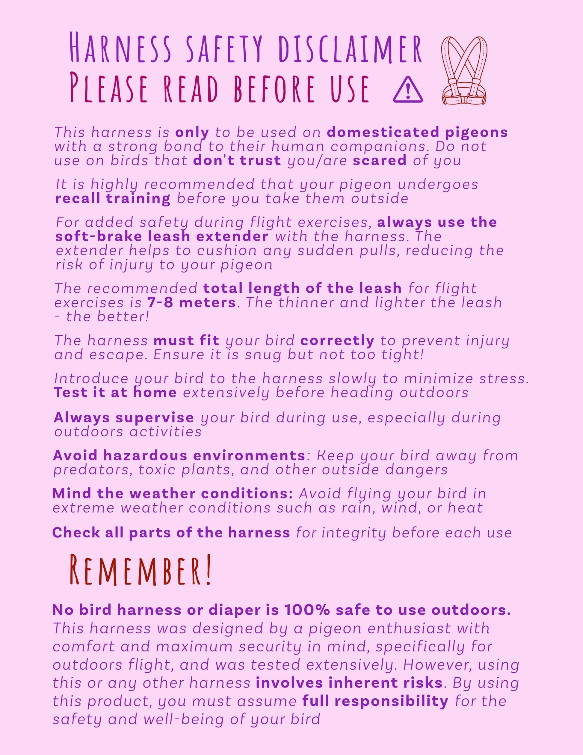 Inspired by Sophie the Pigeon's iconic DIY harness, Fanzy Pants now offers a stylish and functional option that's ready to wear right out of the box Please read the safety disclaimer before use!
