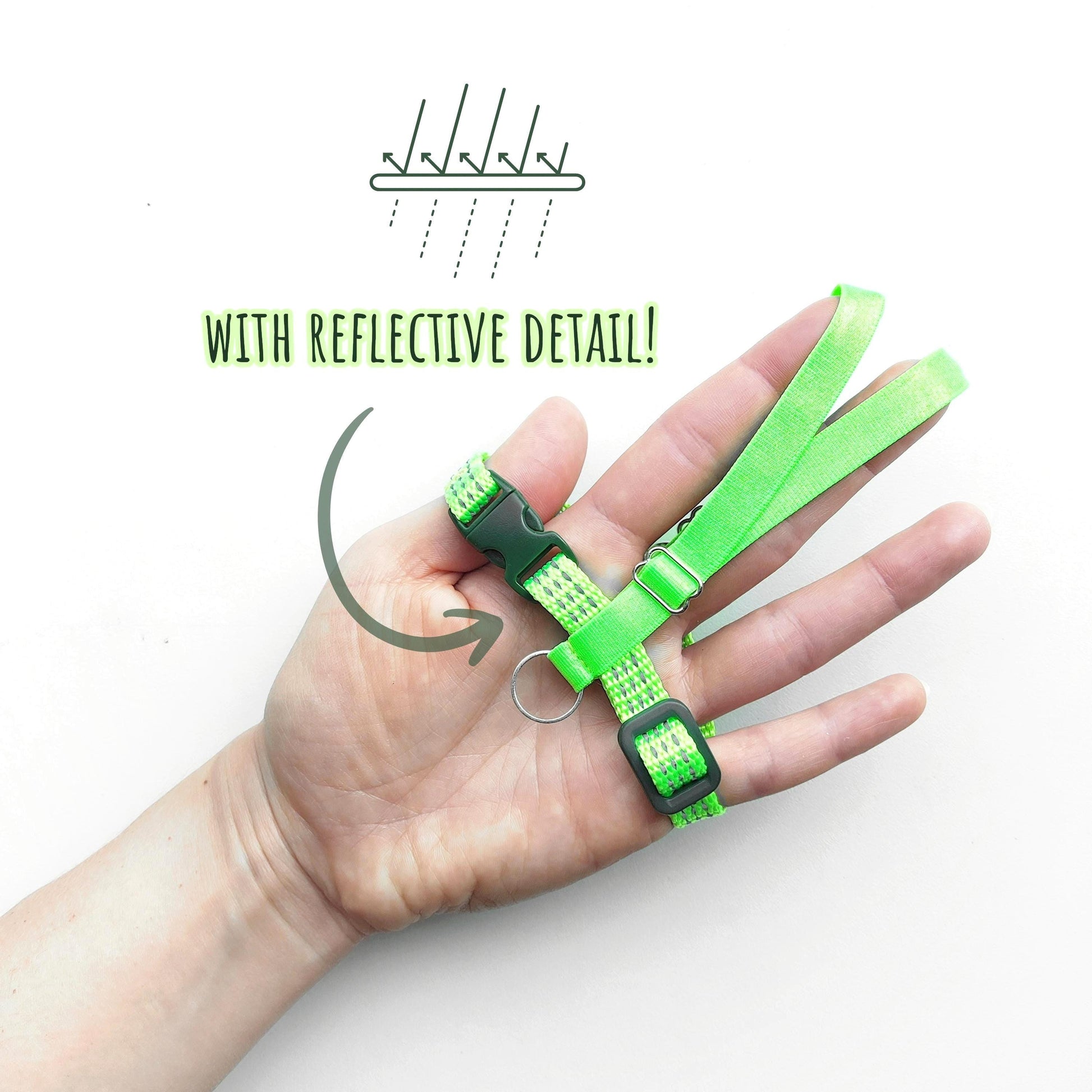 Pigeon Harness "Sophie" - Reflective Bird Flight Harness with Soft-brake Leash Extender - Safety Green and Khaki